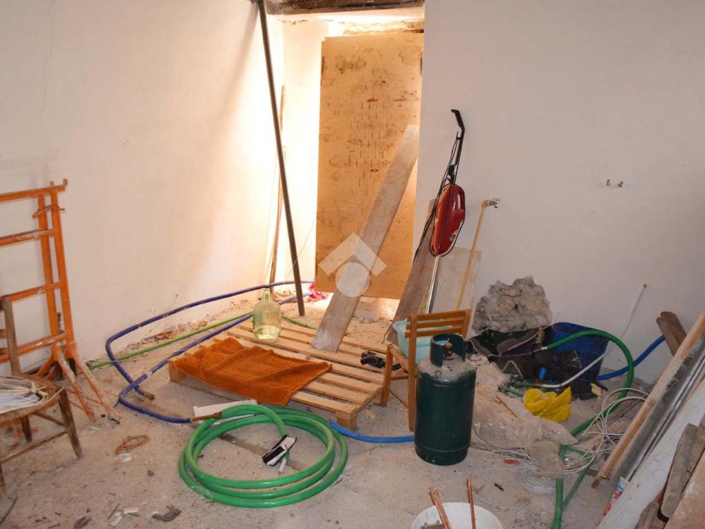 Piano Terra/Rialzato(Buono stato) :Ingresso-Soggiorno con camino e angolo cottura(15mq) Disimpegno(2mq) Camera matrimoniale(13), Cameretta(9), Bagno con finestra e doccia (4,5mq); Sovrastante il suddetto immobile che si accede da altro ingresso laterale, altro vano di 19mq(catastalmente locale deposito) allo stato gresso, dove sono stati portati i tubi dell' acqua e del riscaldamento.
