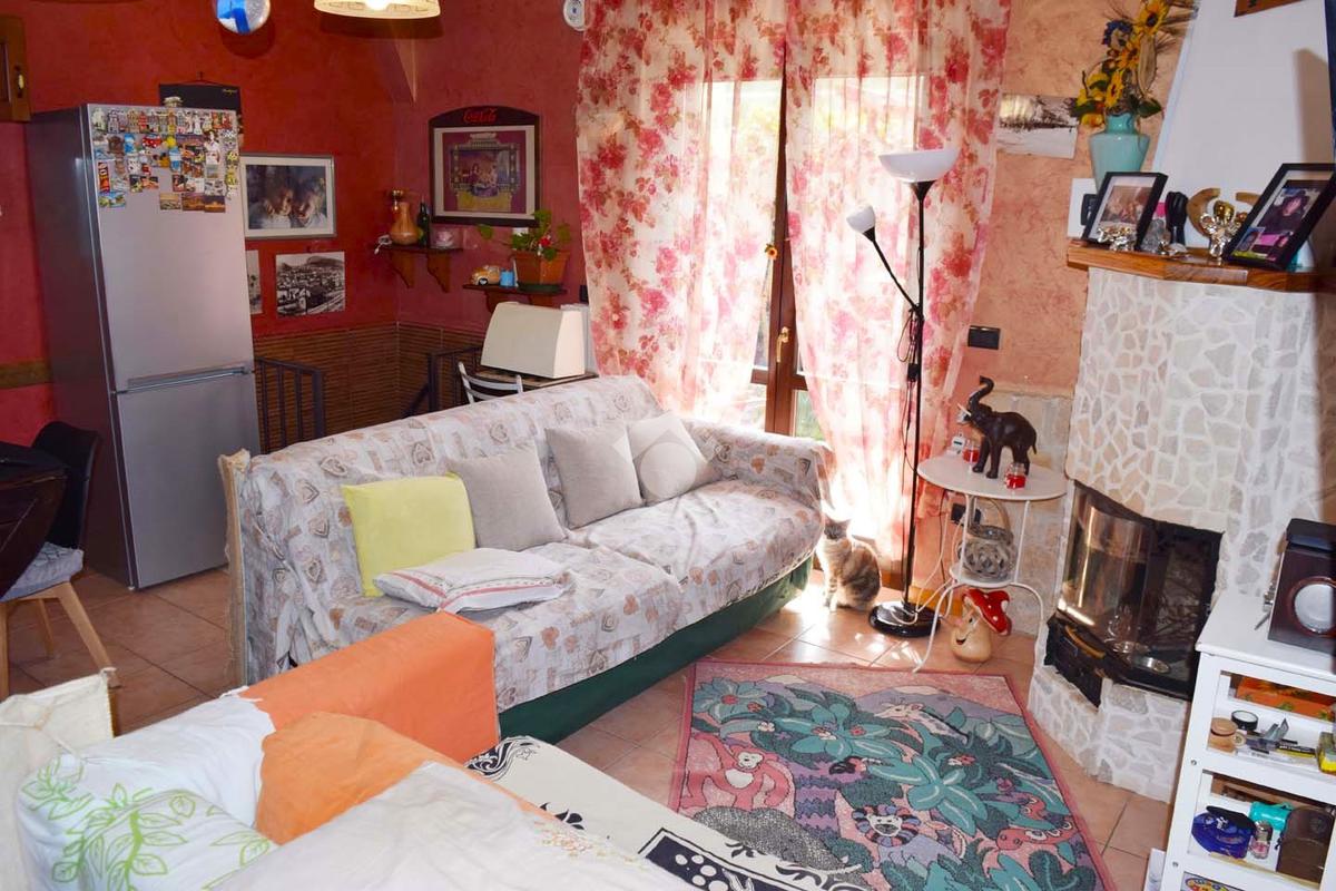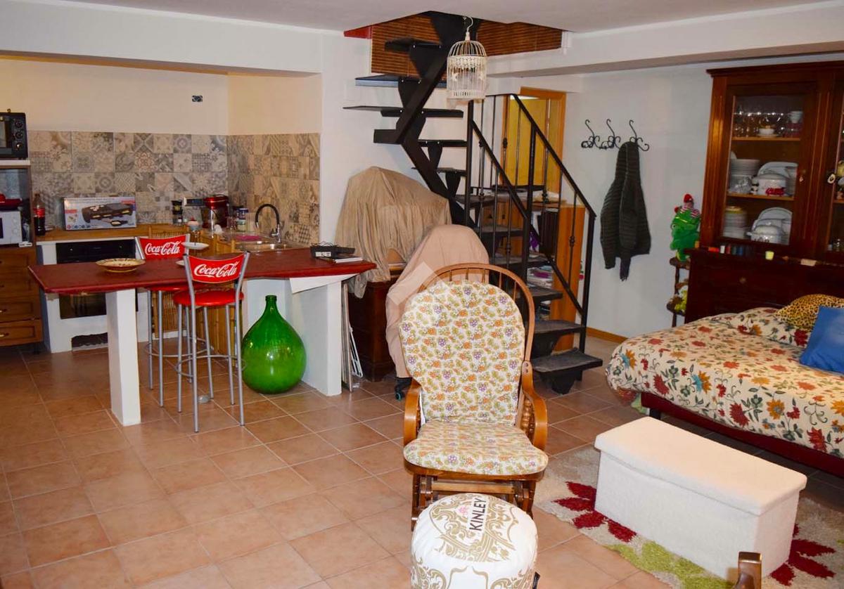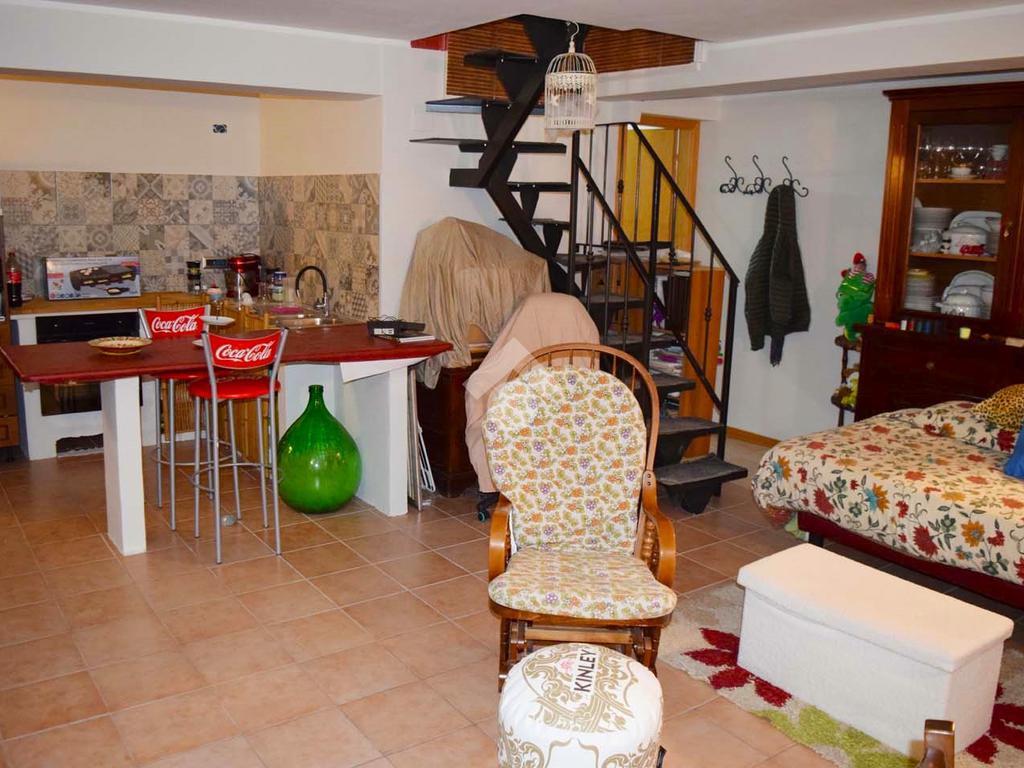 Piano Terra Soggiorno con termo-camino collegato ai termosifoni, angolo cottura, disimpegno, due camere, bagno con finestra;